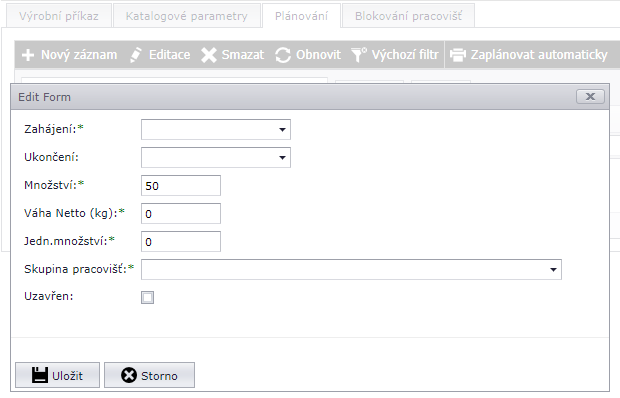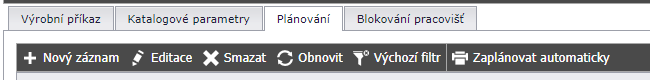 V editaci vybrané výrobní objednávky nám editační formulář nabízí možnost plánování této výrobní objednávky.