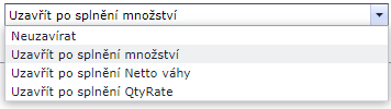 Způsob uzavření výrobní dávky: možnost způsobu uzavření Jobu