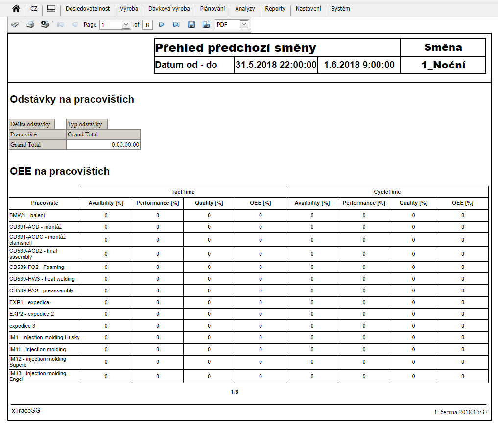 Report přehledu předchozí směny