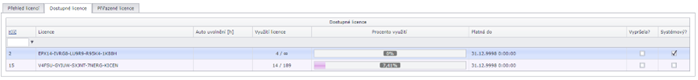 - Uvolnění licence je závislé na hodnotě "Auto uvolnění [h]".