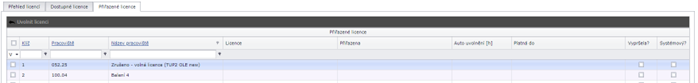 > Přehled licencí | Dostupné licence | Přiřazené licence