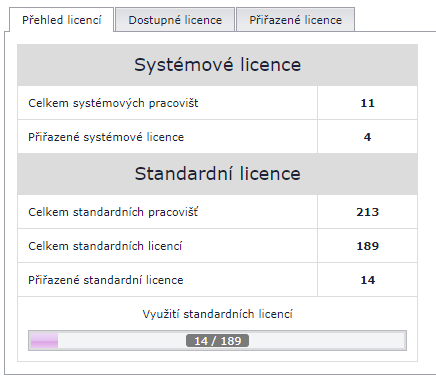 > Přehled licencí | Dostupné licence | Přiřazené licence