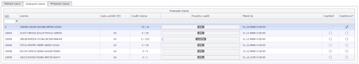 Typ licence, počet licencí, auto uvolnění a expirace se vkládá do licenčního klíče při generování. Tato nastavení se nedají uživatelsky měnit.