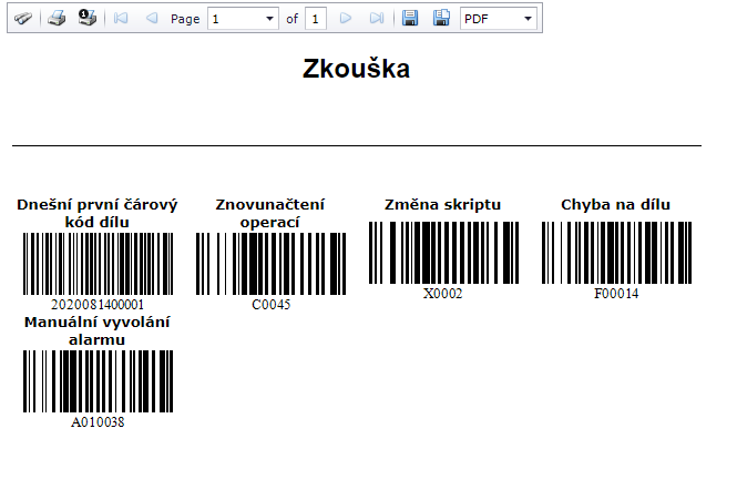Vzhled vygenerovaných čárových kódů na stránce po stisknutí tlačítka "Tisk"