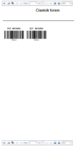Tato funkcionalita nám umožňuje vytisknou sestavu vybraných čárových kódů z definovaných záložek číselníků