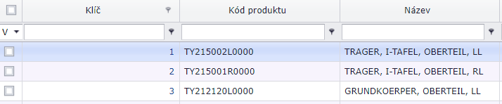 - nebo kliknutím na "Klíč" odpovídající vybranému řádku