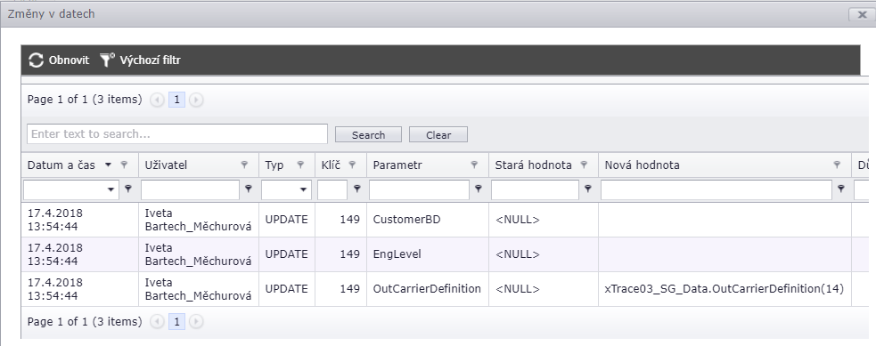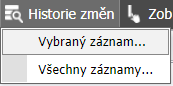 Historie změn - umožňuje zjistit, kdo, kdy a která data byla změněna. Můžeme si vybrat buď daný záznam, nebo pro všechny.