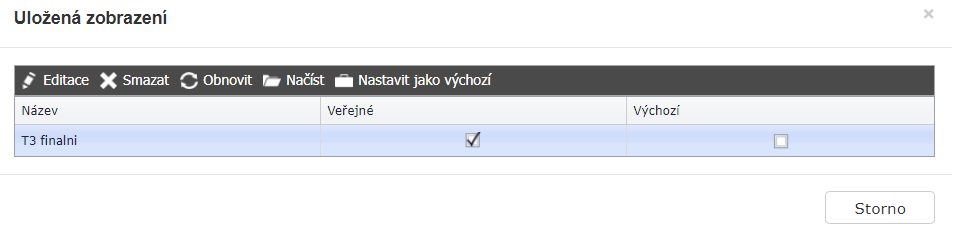 Pokud uživatel označí některé zobrazení jako výchozí, tak se toto zobrazení automaticky načte při otevření stránky.