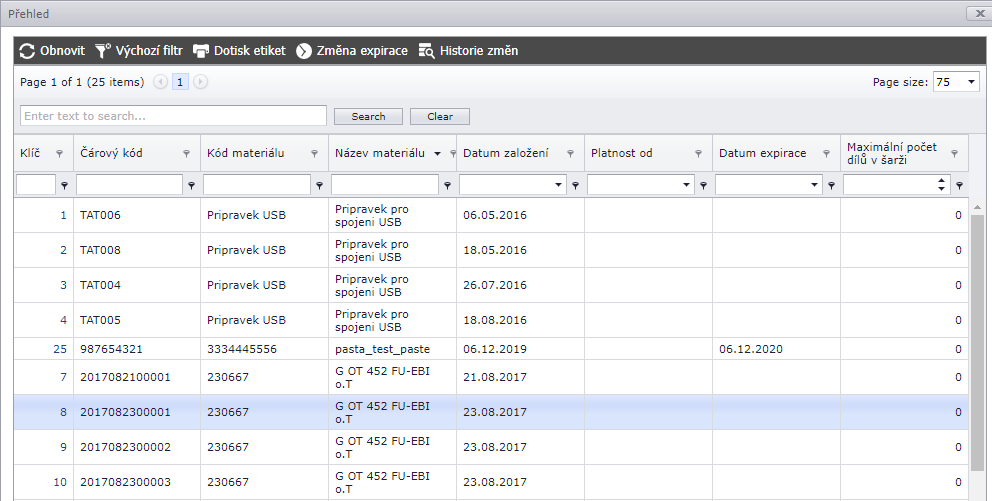 - Datum expirace - pokud kód šarže má danou časovou použitelnost