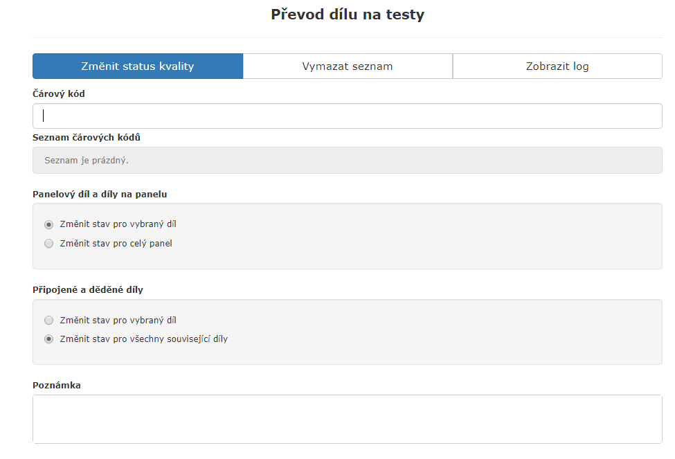 - dá se změnit statut dílu, nebo celému panelovému dílu