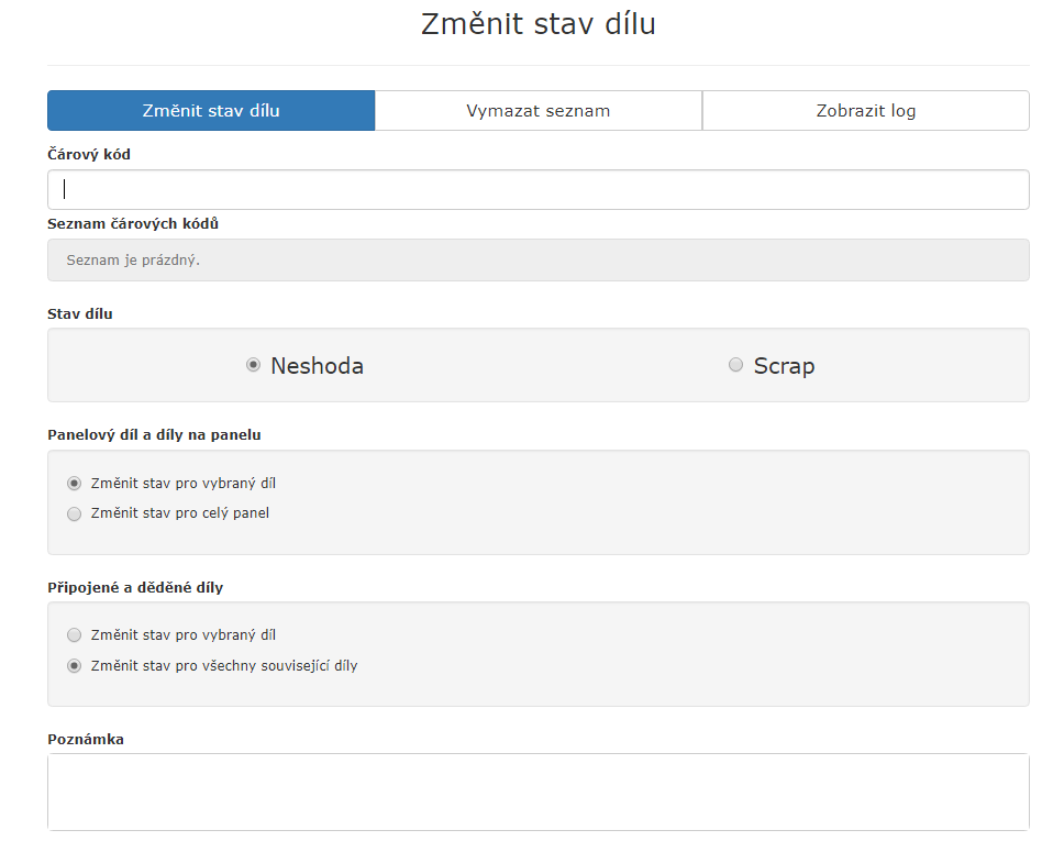 - dá se změnit stav dílu, nebo celému panelovému dílu