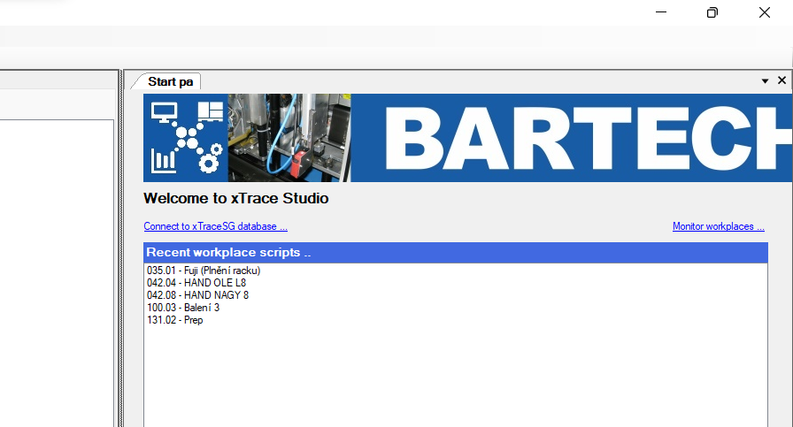 Po otevření xTrace Studia klikneme na Monitor workplace