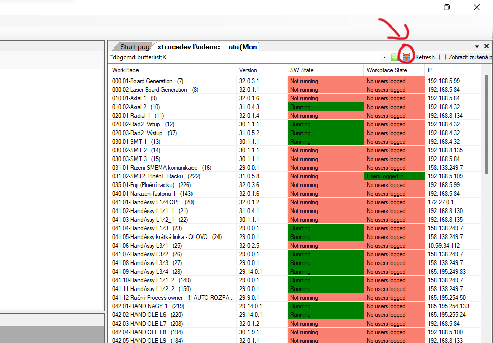 Objeví se nové okno s přehledem pracovišť. Tady si vybereme pracoviště, na které chceme instalovat novou verzi a poté klikneme na ikonu dárku