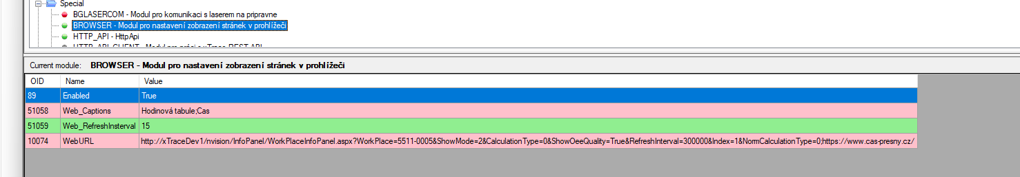 | Web_RefreshInsterval | Perioda (=> 10) [s] pro obnovu URL. Hodnota 0 refresh neprovádí. | 0 |