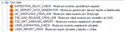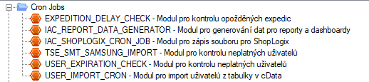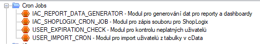 Moduly kategorie CronJobs v xTraceStudiu pro jednotlivé zákazníky