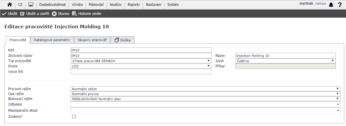 Jinak lze nastavit vše ostatní, takže pokud jste udělali nějaký překlep při vytváření, zde je vaše spása jak to napravit. Nastavení jazyku používaného a zobrazovaného na pracovišti, změna Divize, typu pracoviště, nastavení automatického přiřazení Odhalení a Mezioperačního skladu (i když to se téměř nikdy zde nenastavuje).