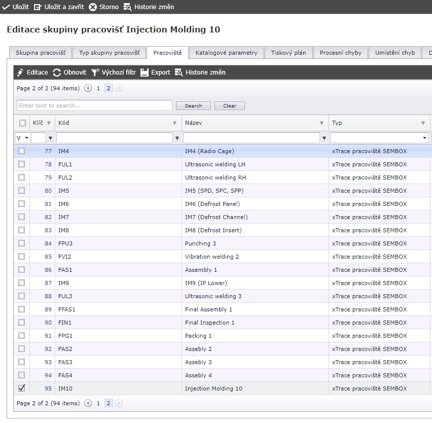 V našem příkladu si nastavíme pouze tuto skupinu pracovišť, kterou nám xTrace Studio díky zatrhnutému políčku při vytváření pracoviště založilo.