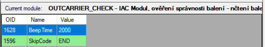 | Popis modulu | IAC Modul, ověření správnosti balení - načtení balení |