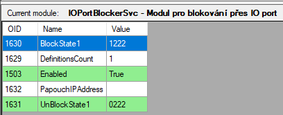 - záložka IO port: modul IOPortBlockerSvc - modul pro blokování přes IO port a nastaven viz obrázek
