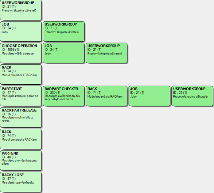 - JOB (načtená výrobní objednávka), USER WORKGROUP