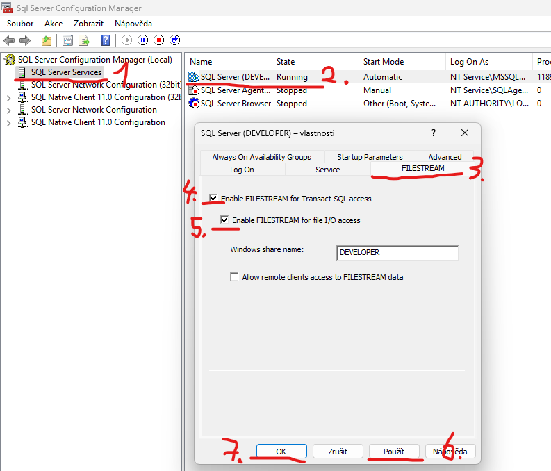 - Napsat tam účet, pod kterým se MSSQL spouští